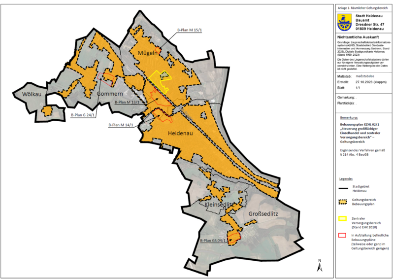 Die Veränderungssperre erstreckt sich über den Geltungsbereich des Bebauungsplans EZHL 02/1 „Steuerung großflächiger Einzelhandel und zentraler Versorgungsbereich“. Der Geltungsbereich orientiert sich damit an der seit 20.12.2012 gültigen Abgrenzungssatzung der Stadt Heidenau. Ausgenommen sind alle im Stadtgebiet befindlichen rechtskräftigen Bebauungspläne und Vorhaben- und Erschließungspläne.