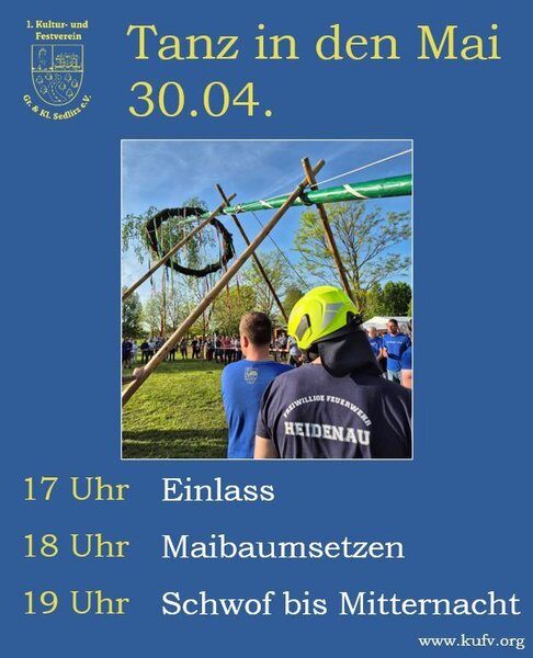 Der 1. Kultur- und Festverein Gr. & Kl. Sedlitz e.V. lädt Sie am 29. und 30. April 2026 herzlich ein, Teil zwei besonderer Tage zu sein.