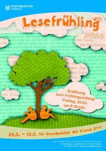 Liebe Kinder, verpasst diesen Frühlingshighlight nicht! Ihr könnt euch ab dem 20. März für den Lesefrühling in der Bibliothek anmelden. Wir freuen uns auf Euch!